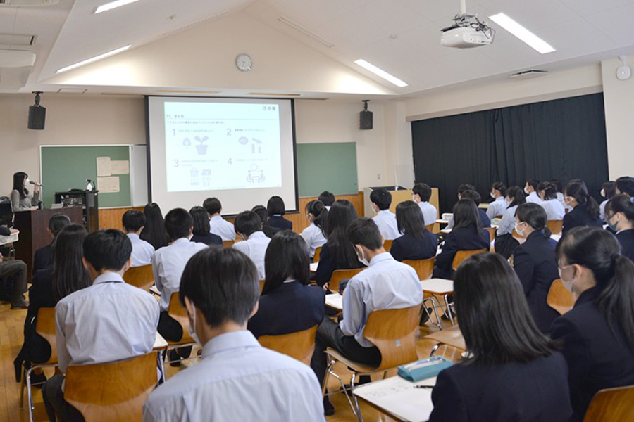 2022年10月19日、愛知県蒲郡市にある蒲郡高等学校の1年生を対象に、1限を使って課外授業を実施しました。