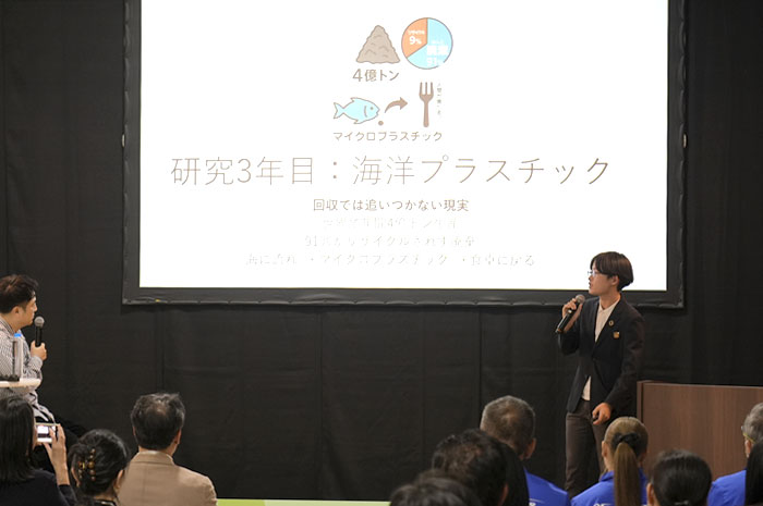 海での生分解性を有するバガス素材が海洋プラスチック問題の解決に貢献できるのではと考え、海洋プラスチックをテーマに研究。