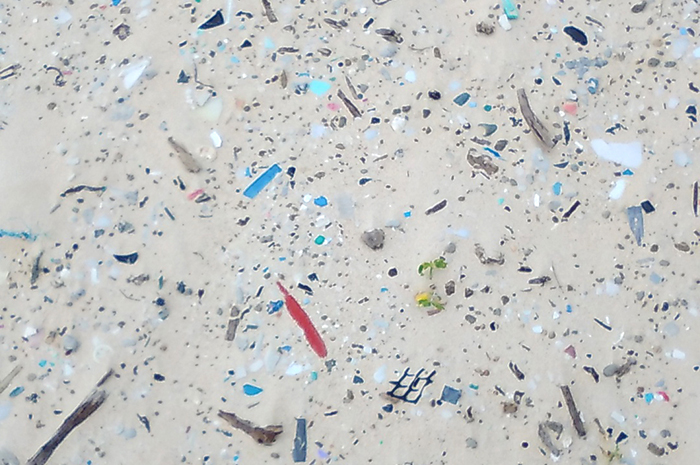 マイクロプラスチックとは、環境中に廃棄されたプラスチックが川や海に流出し、紫外線や波によって劣化して砕けた5mm以下のプラスチックのことです。